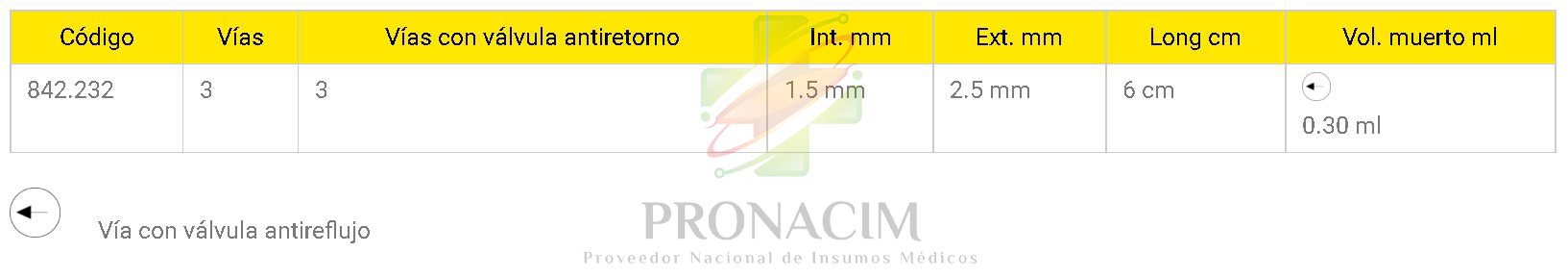 Vías 3, Diámetro Interno1.5 mm, diámetro externo 2.50 mm, Longitud 6 cm, volumen muerto 0.44 ml,
